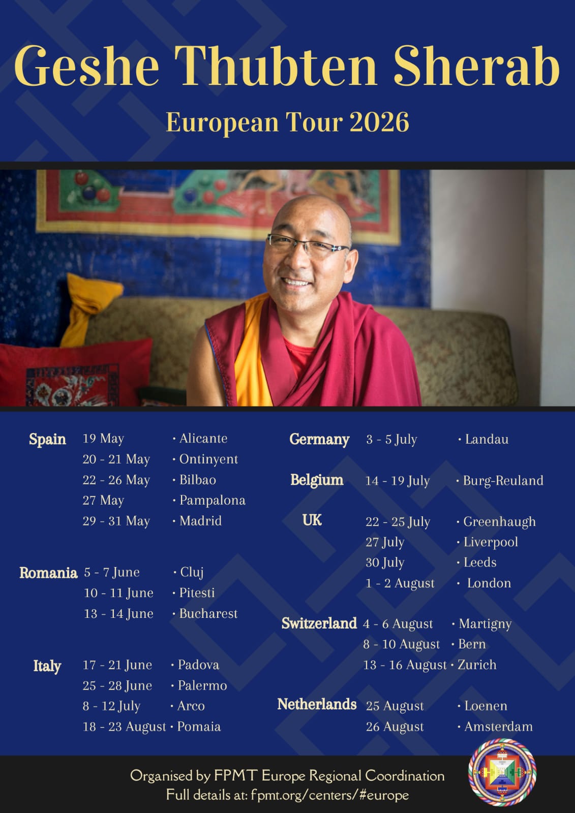 Tour Europeo 2026 Geshe Tenzin Sherab